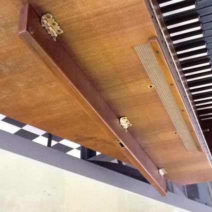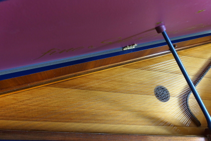 Som det ses på billedet er det muligt at spille med låget lukket, hvilket giver en afdæmpet og blød klang, velegnet til langsomme satser. Træet er nøddetræ og tangenterne er af ibenholt og de hvide er elfenben (ikke forbudt i 60'erne).
